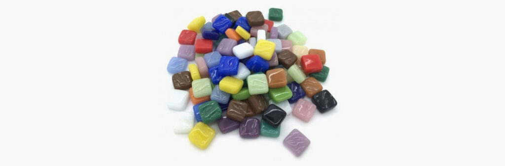 Las teselas son unas pequeñas piezas realizadas en vidrio, dando como resultado un material de gran dureza y calidad. En este caso las teselas tienen un tamaño de 8 x 8 x 3 mm las cuales en su conjunto forman la imagen final.