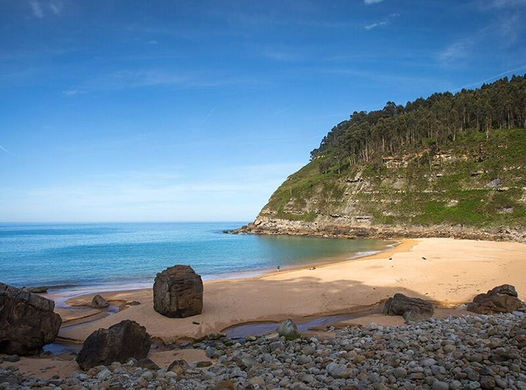 La Playa España está ubicada en la desembocadura del río España, entre las parroquias de Villaverde y Quintes. Cuenta con un entorno singular de acantilados y piedra en los que se encuentran restos fósiles. Su nombre proviene de la voz en asturiano ‘españar’, que significa explotar, y hace referencia al ruido que hacen las olas al romper contra las rocas. El fuerte oleaje es una de sus características, lo que la hace muy atractiva para la práctica del surf.